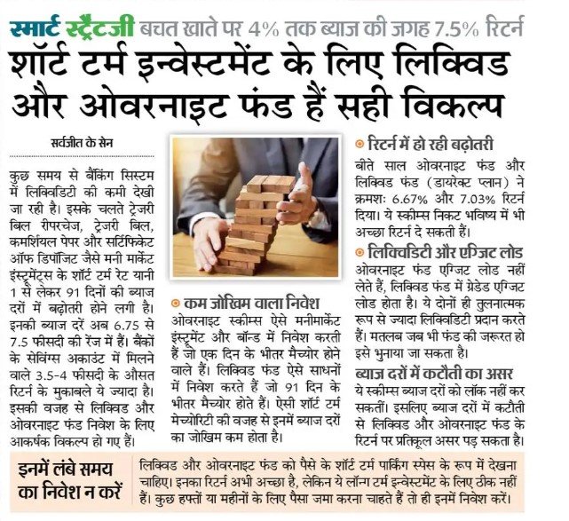 Read Moreशोर्टटर्म इन्वेस्टमेंट के लिए लिक्विडिटी और ओवरनाइट फण्ड दे सकते है अच्छा रिटर्न