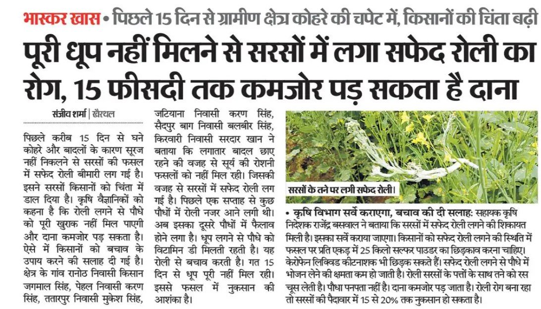 Read Moreशीत लहर से सरसों पर असर 15 फिसिदी दाना कमजोर होने की संभावना