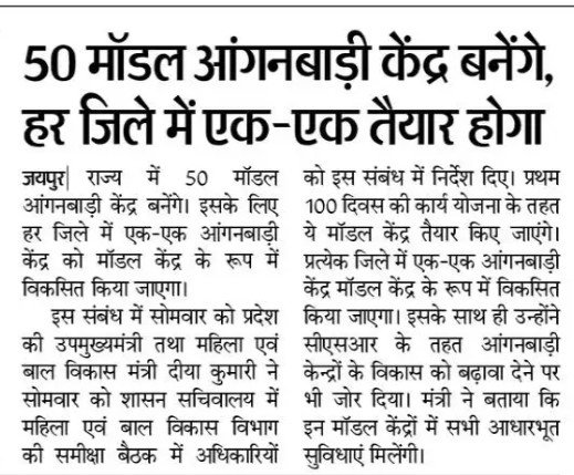 Read Moreमरू भूमि के हर जिले में बनेंगे 50 मोडल आँगनवाड़ी केंद्र