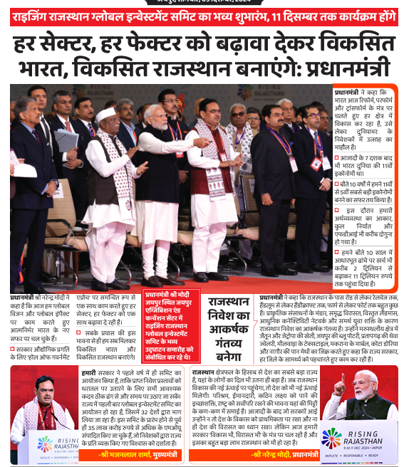 प्रधानमंत्री का आह्वान: उन्होंने 'विकसित भारत' और 'विकसित राजस्थान' के संकल्प को दोहराते हुए कहा कि हर फैक्टर को बढ़ावा देकर रोजगार और समृद्धि लाई जाएगी।