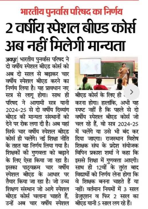 Read More2 वर्षीय स्पेशल बीएड कोर्स को अब नहीं मिलेगी मान्यता
