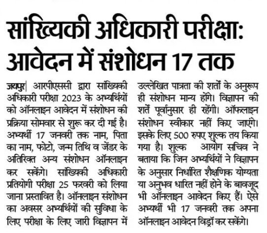 Read Moreसांख्यिकी अधिकारी परीक्षा में संसोधन का अंतिम अवसर