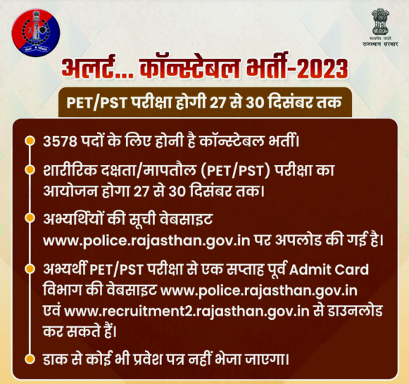 Read Moreराजस्थान पुलिस कांस्टेबल भर्ती परीक्षा 2023 अलर्ट