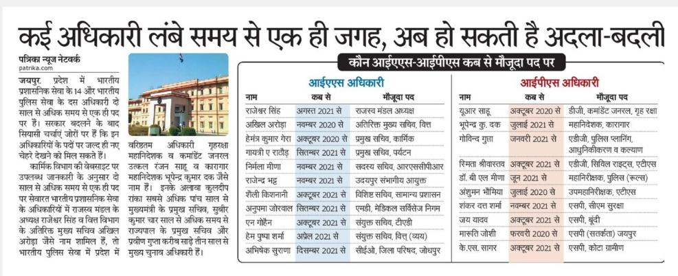 Read Moreरजवाड़े में राज बदलने पर क्या बदले जायेगे वो अधिकारी जो लम्बे समय से एक ही सीट पर बैठे हुए है