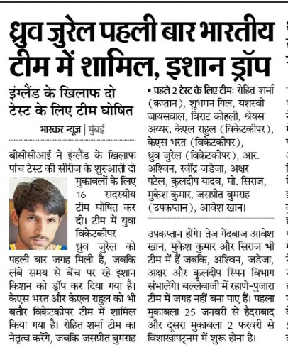 Read Moreध्रुव जुरेल पहली बार इंडियन टीम में शामिल , ईशान बहार