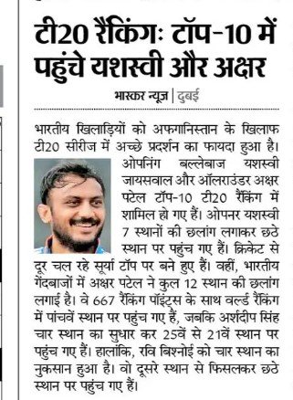 T20 रैंकिंग की टॉप 10 में पहुचे अक्षर और जेसवाल