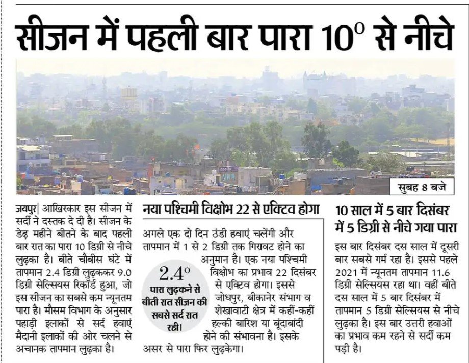 Read Moreजयपुर में शीत लहर की आहत तापमान 10 डिग्री से कम