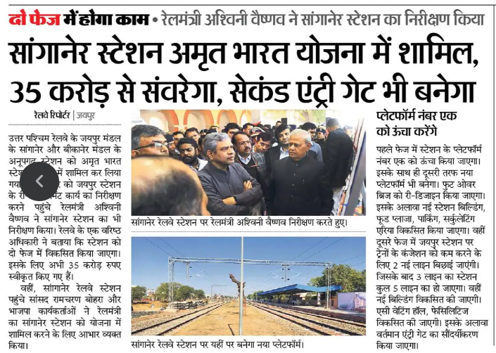 Read Moreसांगानेर स्टेशन अमृत भारत योजना में शामिल , बदलेंगी तस्वीर