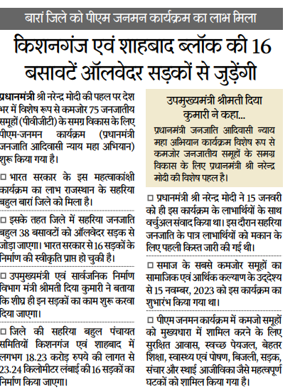 Read Moreसहरिया जनजाति को मुख्य धारा में लाने हेतु बसावट को जोड़ा जायेगा सडको के माध्यम से