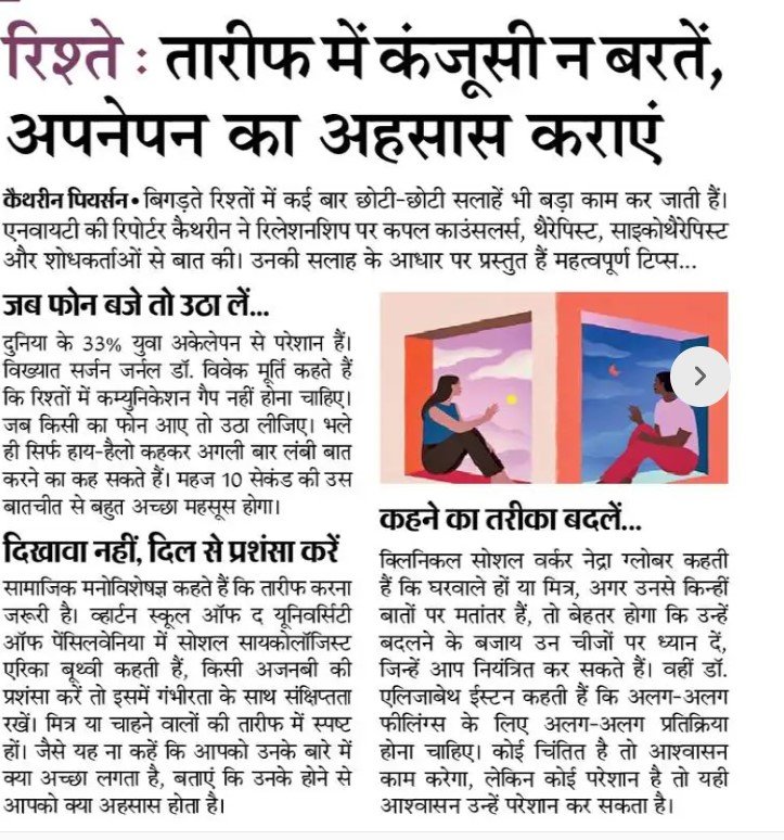 Read Moreरिस्तो में अपनापन बहुत जरुरी ,लाइफ पार्टनर की खुल कर करे तारीफ