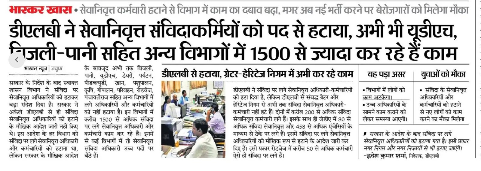 Read Moreरिटायरमेंट के बाद भी विभाग से मोह भंग नहीं हो रहा है 1500 से अधिक कर्मचारी संविदा पर लगे हुए है