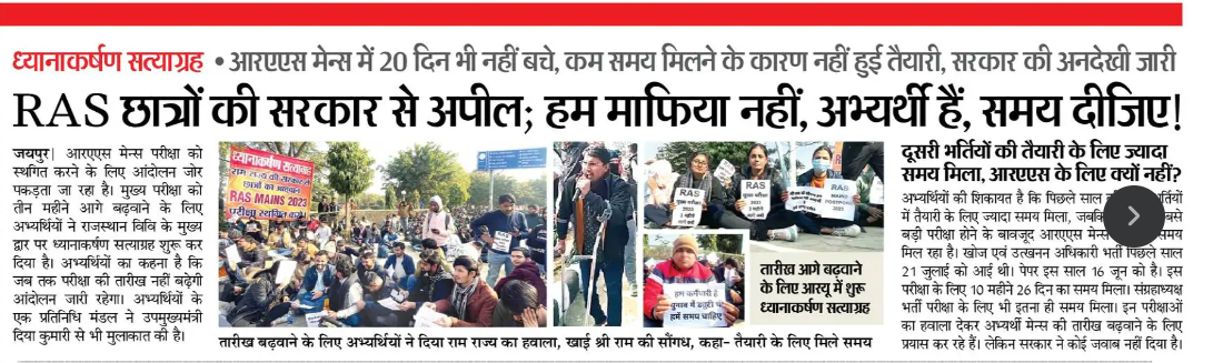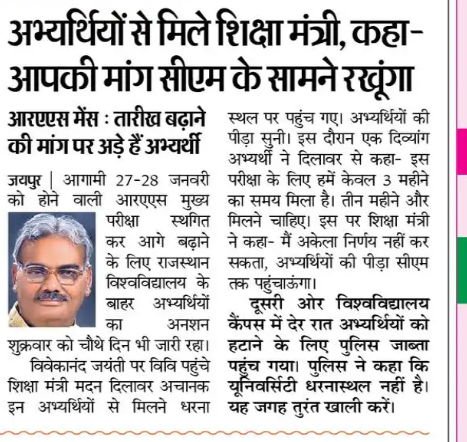 Read Moreशिक्षा मंत्री का आश्वाशन RAS-2023 की परीक्षा तिथि को आगे बढाया जायेगा