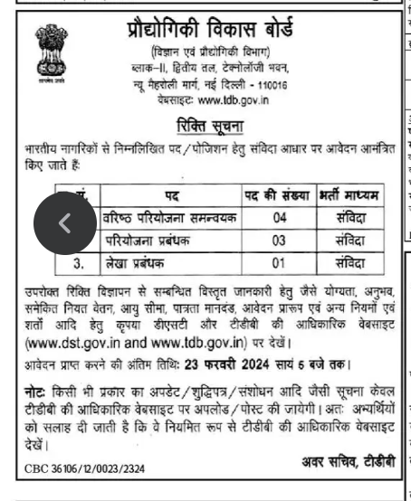 Read Moreप्रौद्योगिकी विकास बोर्ड में संविदा के आधार पर भर्ती
