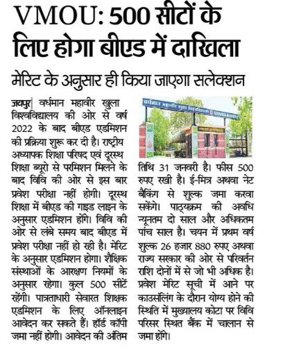 VMOU में 500 सीटो के लिए बीएड में होगा दाखिला