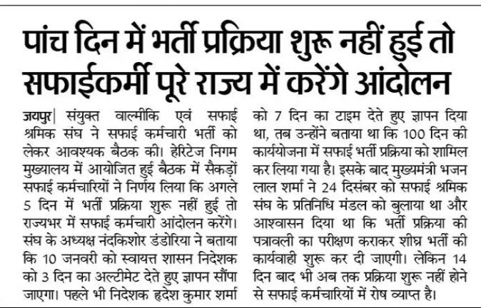 Read Moreसफाई भर्ती में देरी करने पर आन्दोलन की चेतावनी