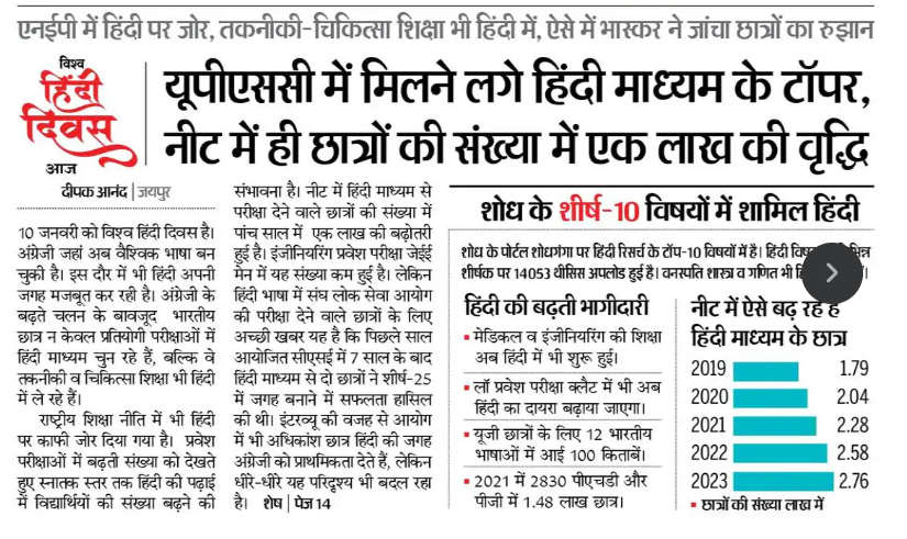 UPSC में बढ रहा है हिंदी माध्यम के विधार्थियों का दबदबा