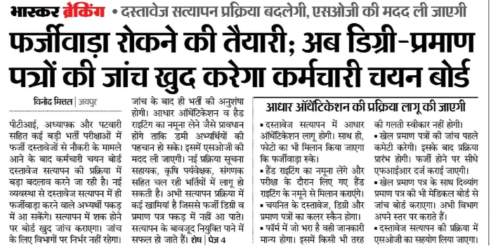 Read Moreफर्जी डिग्री को लेकर कर्मचारी चयन बोर्ड सख्त , SOG की मदद से करेगा कार्यवाही